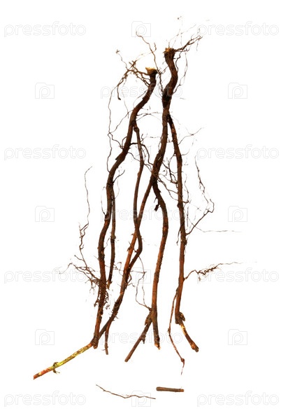 Старый сухой корень ежевики на белом фоне