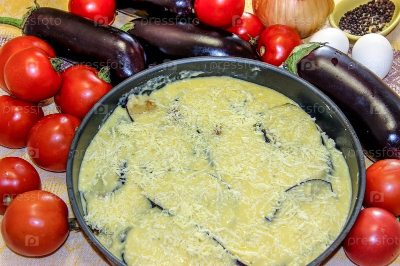 Подготовленную к запеканию мусаку посыпают тертым сыром. Свежие овощи для приготовления легкого ужина, мусака - традиционное греческое блюдо пошаговый процесс приготовления