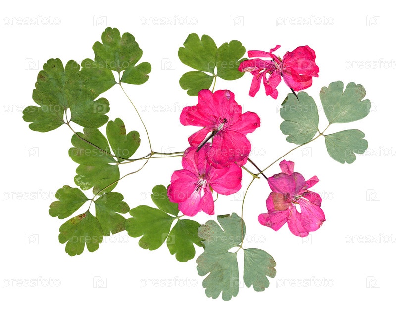 Изолированное применение розовой герани из сушеных прессованных ярких цветов