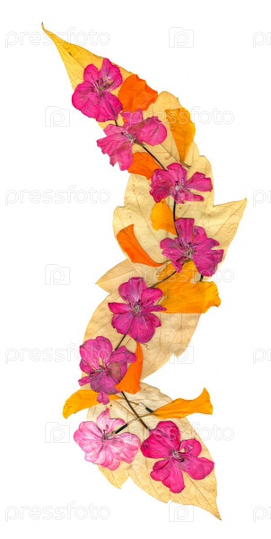 Изолированная волновая линия розовой герани, коллекция элементов применения сушеных прессованных ярких цветов