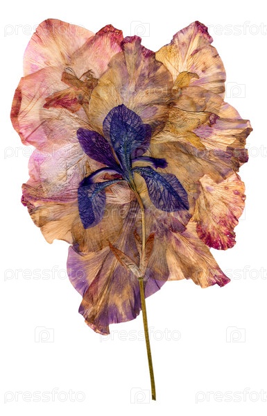 Разноцветная аппликация из сушеных прессованных цветов ириса