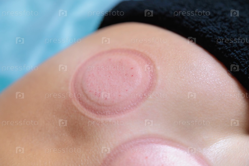 Следы после процедуры хиджамы на теле молодой девушки