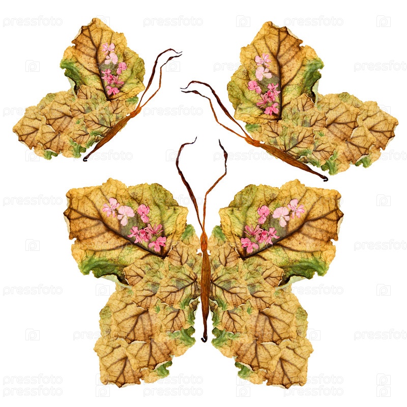 Цветочная бабочка из сухих листьев и цветов