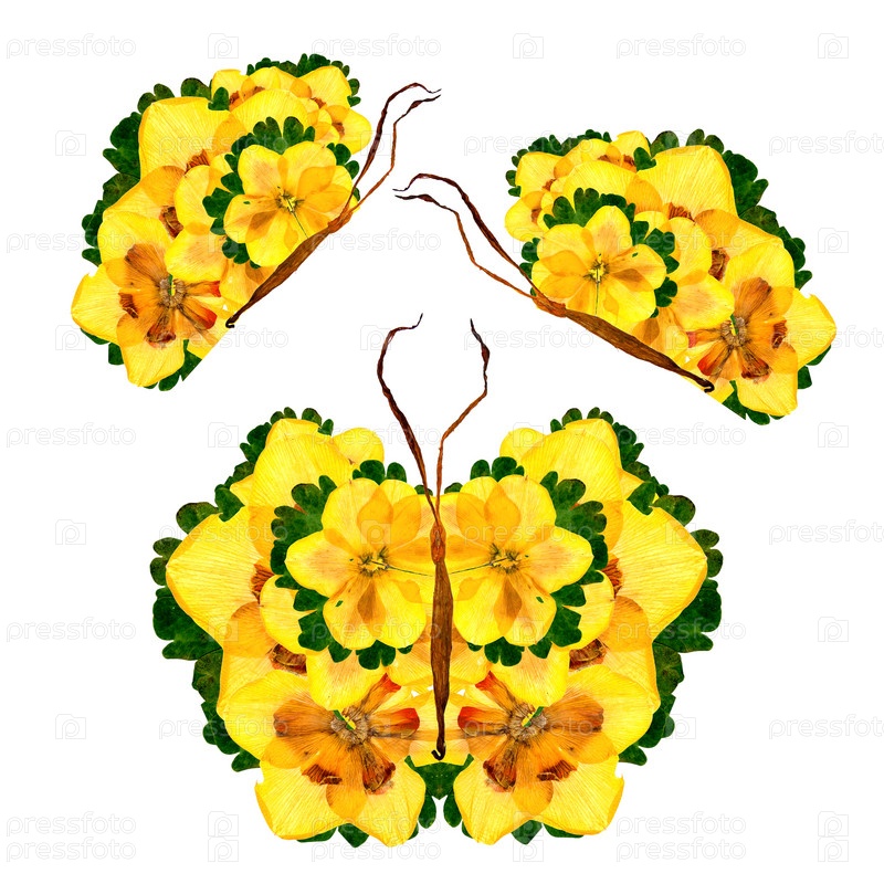 Цветочная бабочка из лепестков листьев и цветов нарцисса