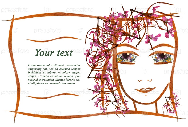 Пригласительная аппликация лица девушки из цветов и листьев