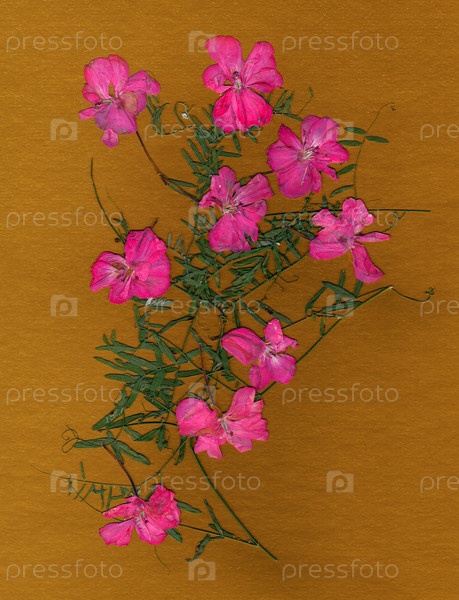 Аппликация, букет из сухой герани и душистого горошка