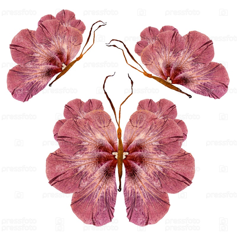 Цветочная бабочка из лепестков лилии, листьев и цветов