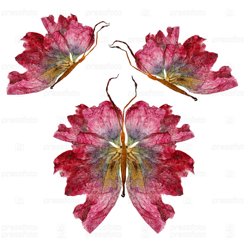 Цветочная бабочка из лепестков лилии, листьев и цветов