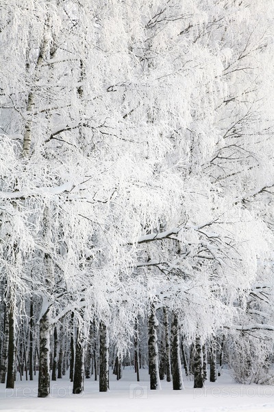 Русская зима в березовой роще
