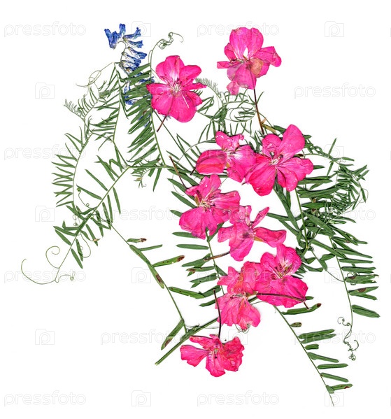 Аппликация, букет из сухой герани и душистого горошка