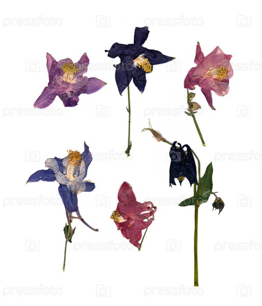 Сухая большая розовая перспектива нежная королевская аквилегия с прессованными лепестками, изолированными на фоне альбома для вырезок