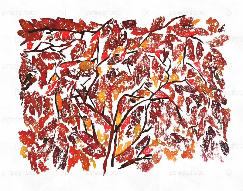 Рисунок сухих осенних листьев и цветов на решетке из тонкой соломы и веток, изолированных на белом фоне акварельной бумаги для альбома для вырезок, окрашенных деревянных досок, объекта, грубого осеннего листа