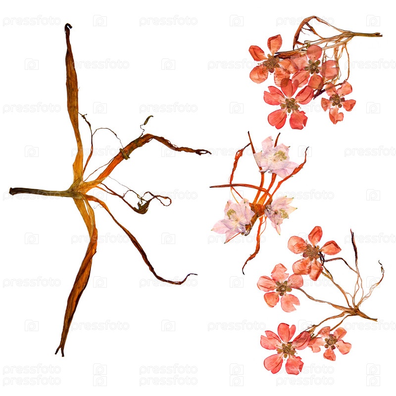 Аппликационный букет из сухих причудливых лепестков лилии и прессованных разноцветных цветов