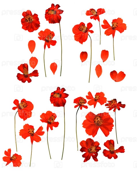 Сушеная прессованная космея, нежные цветы и лепестки космоса изолированы
