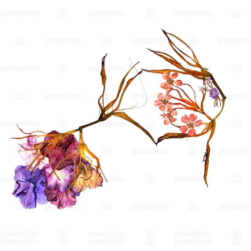 Аппликационный букет из сухих причудливых лепестков лилии и прессованных разноцветных цветов