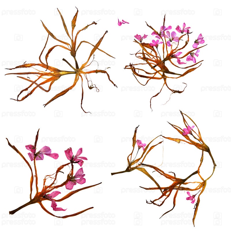 Аппликационный букет из сухих причудливых лепестков лилии и прессованных разноцветных цветов