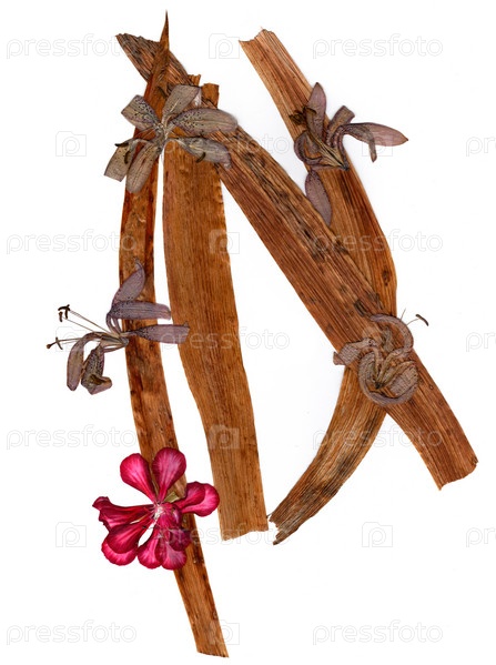 Букет из засушенных прессованных цветов красной герани и сирени