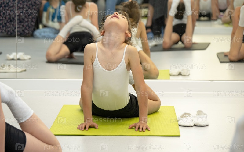 Ребенок занимается в тренажерном зале на коврике, делает упражнения на растяжку и пресс, гимнастику и общефизическую спортивную подготовку. Работа над собой и своим телом с детства, преодоление себя