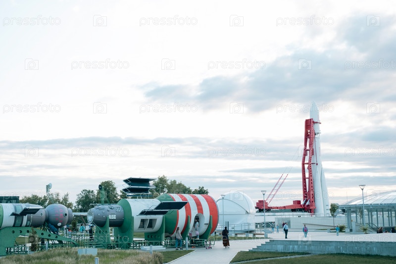 Калужский музей космонавтики - подготовка к открытию 2-й очереди. Ракета Восток, купол планетария, парк Циолковского перед зданием, реконструкция. 29 августа 2022 г., Калуга, Россия
