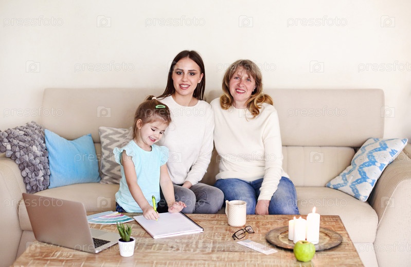 Любящая зрелая женщина с маленькой дочерью и внучкой