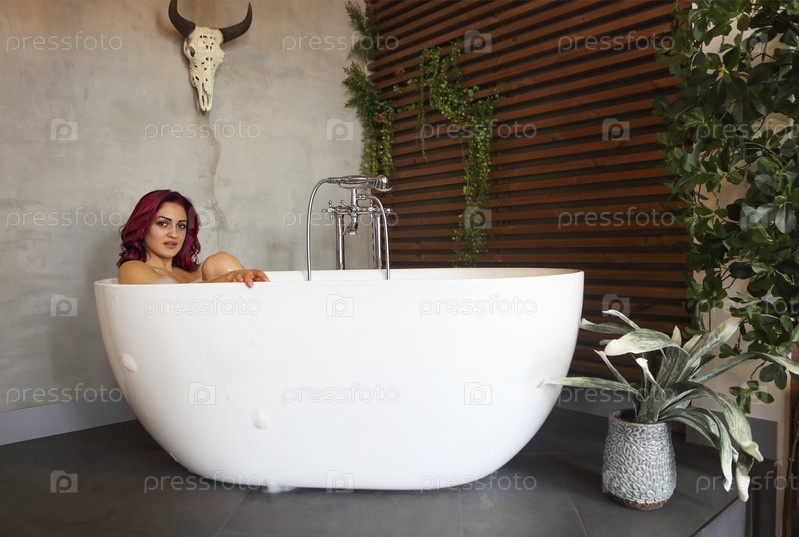 Счастливая молодая женщина расслабляется в ванне