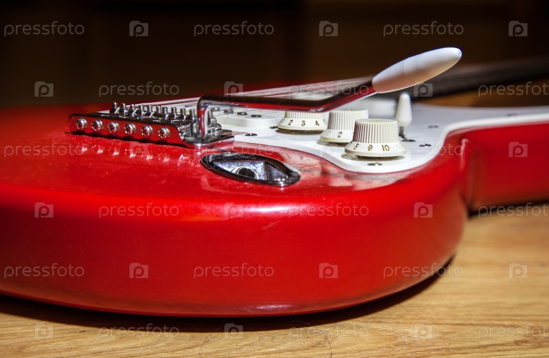 Часть корпуса красной 6-струнной гитары