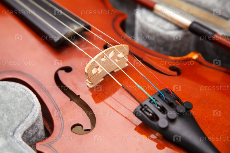 Скрипка лежит в футляре крупным планом