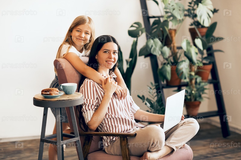 Беззаботная мать и дочь обнимаются дома