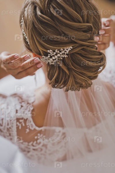 Свадебная прическа красивой девушки крупным планом