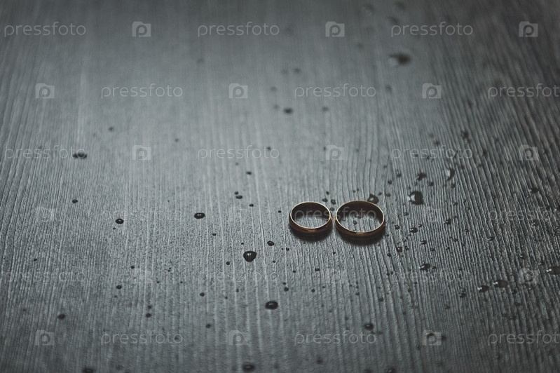 Обручальные кольца на темном деревянном столе