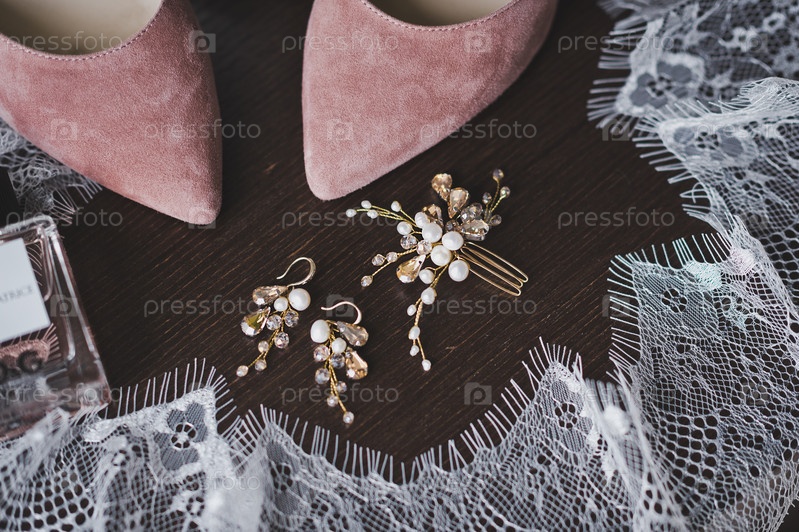 Красивые фотографии разложенных на столе аксессуаров невесты