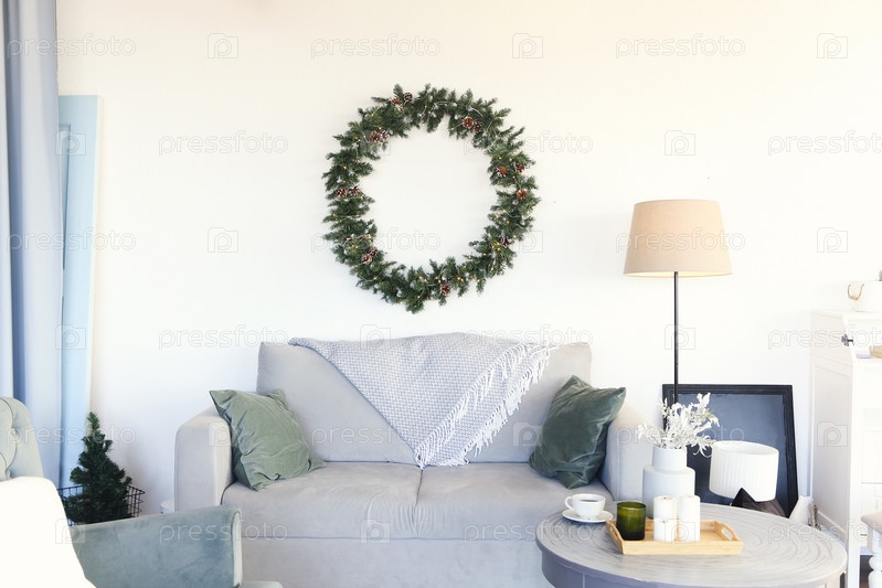 Уютный интерьер гостиной на Рождество