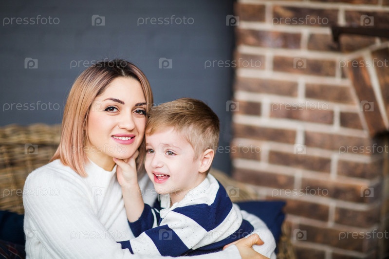 Молодая мать и сын в уютной комнате