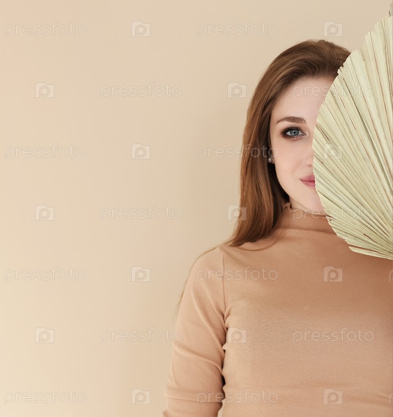 Молодая женщина закрыла лицо веером