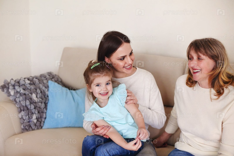 Любящая зрелая женщина с маленькой дочерью и внучкой