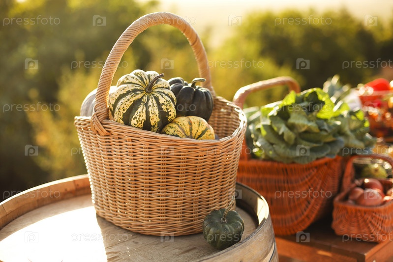Корзины с овощами на рынке