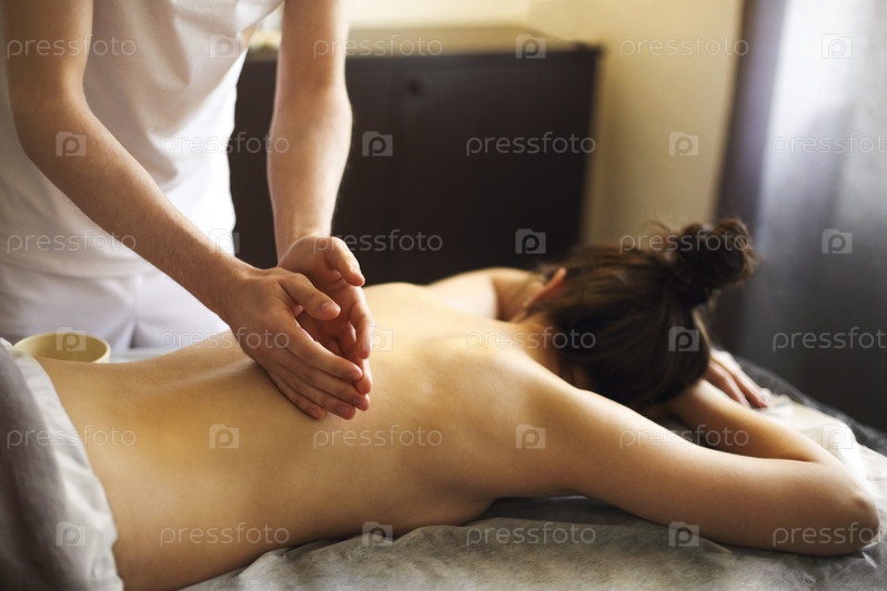 Массажист потирает спину женщины