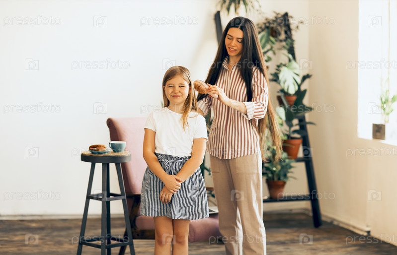 Женщина заботится об улыбающейся девушке дома
