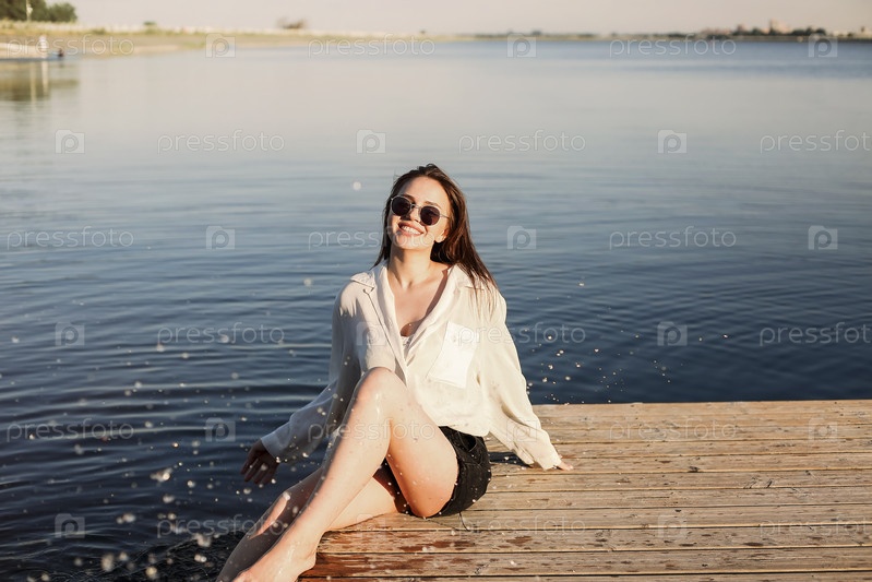 Стильная женщина на пирсе