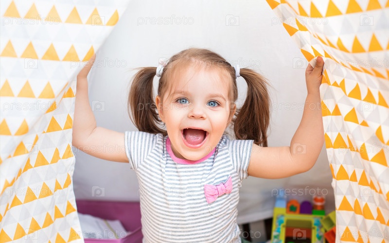 Восхищенный ребенок смеется дома
