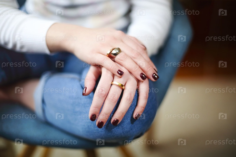женщина с темным маникюром в кольцах