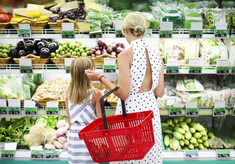 Молодая женщина с дочерью в супермаркете