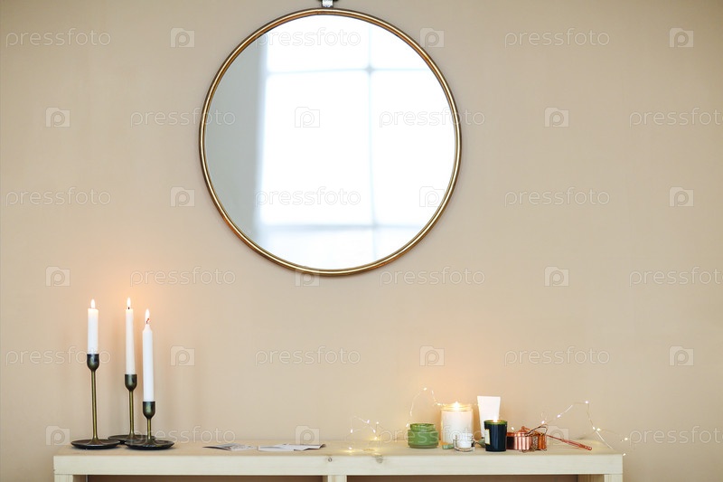 Свечи и средства по уходу за кожей на столе