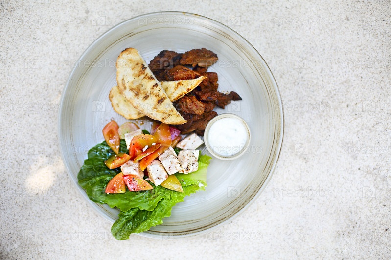 Ростбиф, тофу, помидоры, салат и овощи