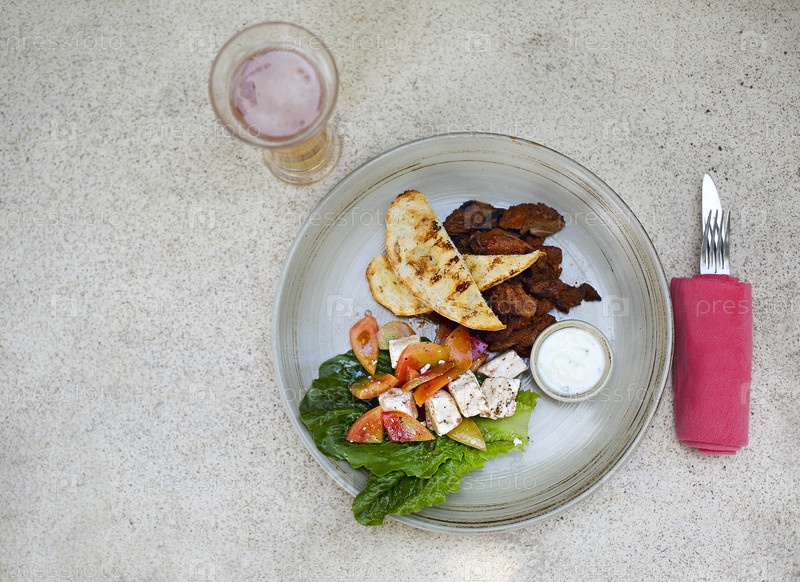 Ростбиф, тофу, помидоры, салат и овощи