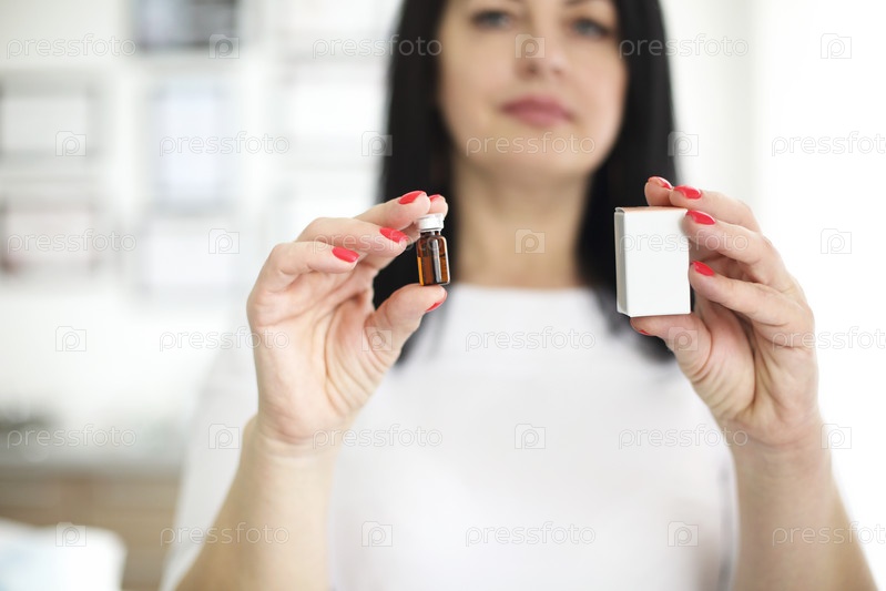 Косметолог показывает флакон с антивозрастной сывороткой
