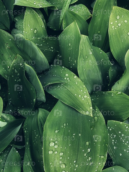 Фон из свежих мокрых зеленых листьев