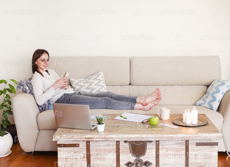 Веселая женщина отдыхает дома