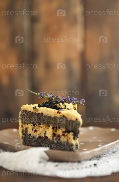 Тарелка с одним кусочком лавандового торта