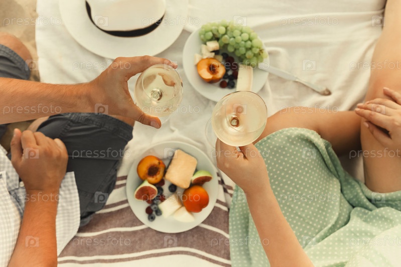Пара урожая пьет вино во время пикника